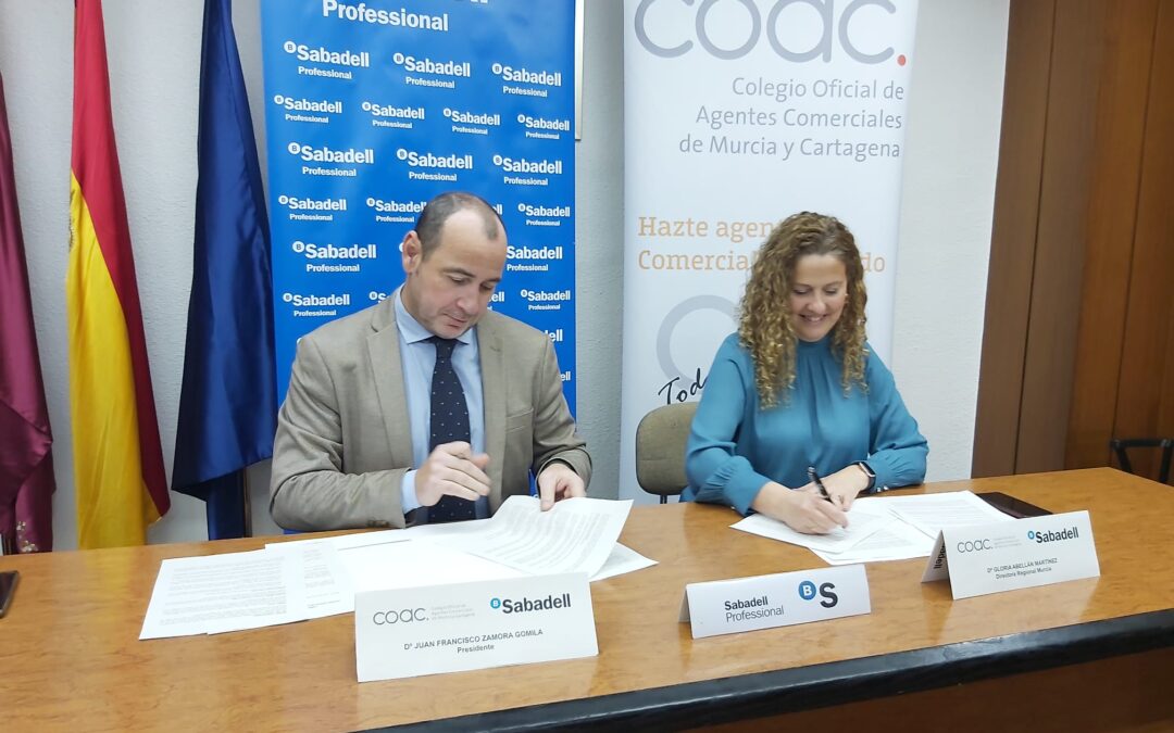 El pasado viernes 14 de marzo se firmó la renovación del Convenio con el Banco Sabadell, por la Directora Regional del Sabadell Gloria Abellán Martínez y el Presidente del Colegio Juan Francisco Zamora Gomila. Contamos con la asistencia del Director de la Oficina Principal de Murcia de los Colegios Profesionales Carlos Sam García, el Director de Sabadell Profesional Alonso Martínez Ferriz, el Vicepresidente del Colegio Juan Pedro López Olivares y el Tesorero del Colegio Manolo González VIllaescusa.
